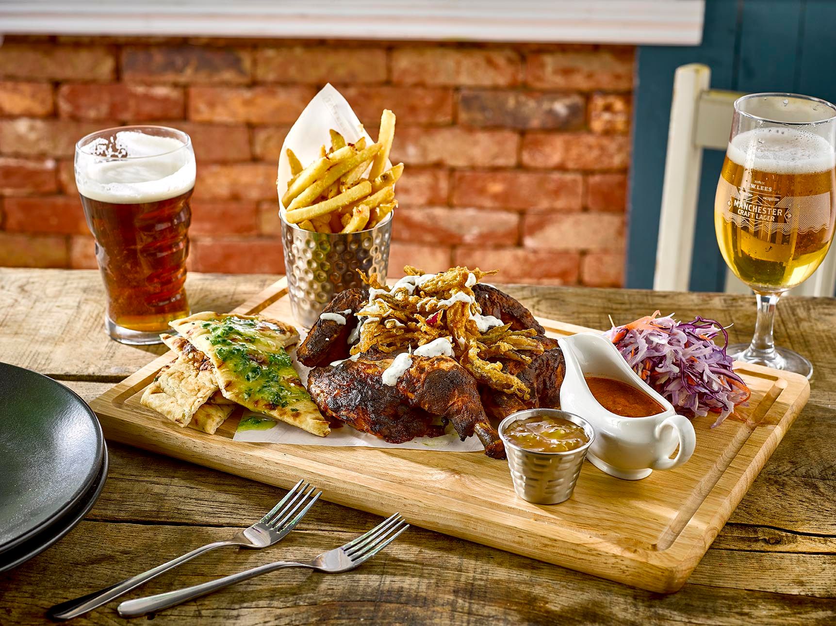 Our home-cooked seasonal dishes are perfect for cosy gatherings with friends and family in Garstang. Choose from delicious new dishes like Crispy fried spiced chicken thighs, Smoked bacon loin chop, Fritto misto and Roasted cauliflower. Also, not forgetting timeless pub classics and hearty winter-warming pies, you can expect plenty of choice when looking through our menus. From John Willie’s battered fish to Slow-braised steak & JW Lees ale pie, there’s a dish for everyone.